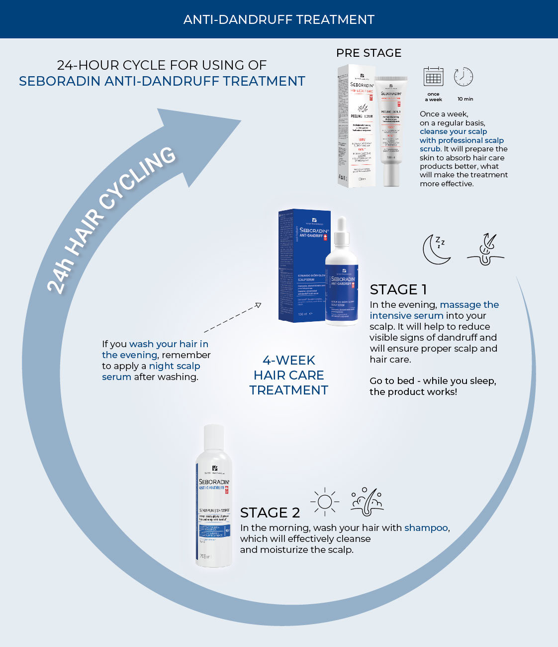 DAILY CYCLE FOR USING THE SEBORADIN ANTI-DANDRUFF TREATMENT