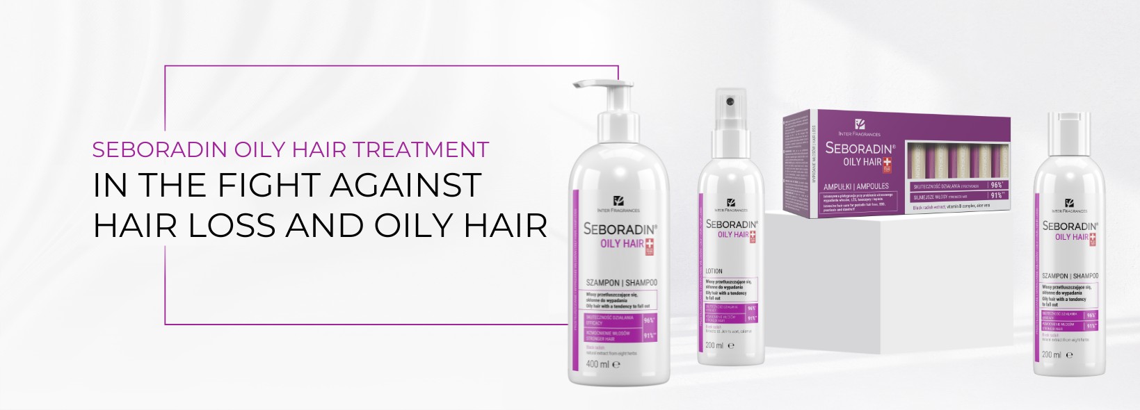 Seboradin OILY HAIR shampoo for seborrhoeic scalp, lotion, and ampoules are preparations designed especially for people struggling with problem of oily hair but also for people: