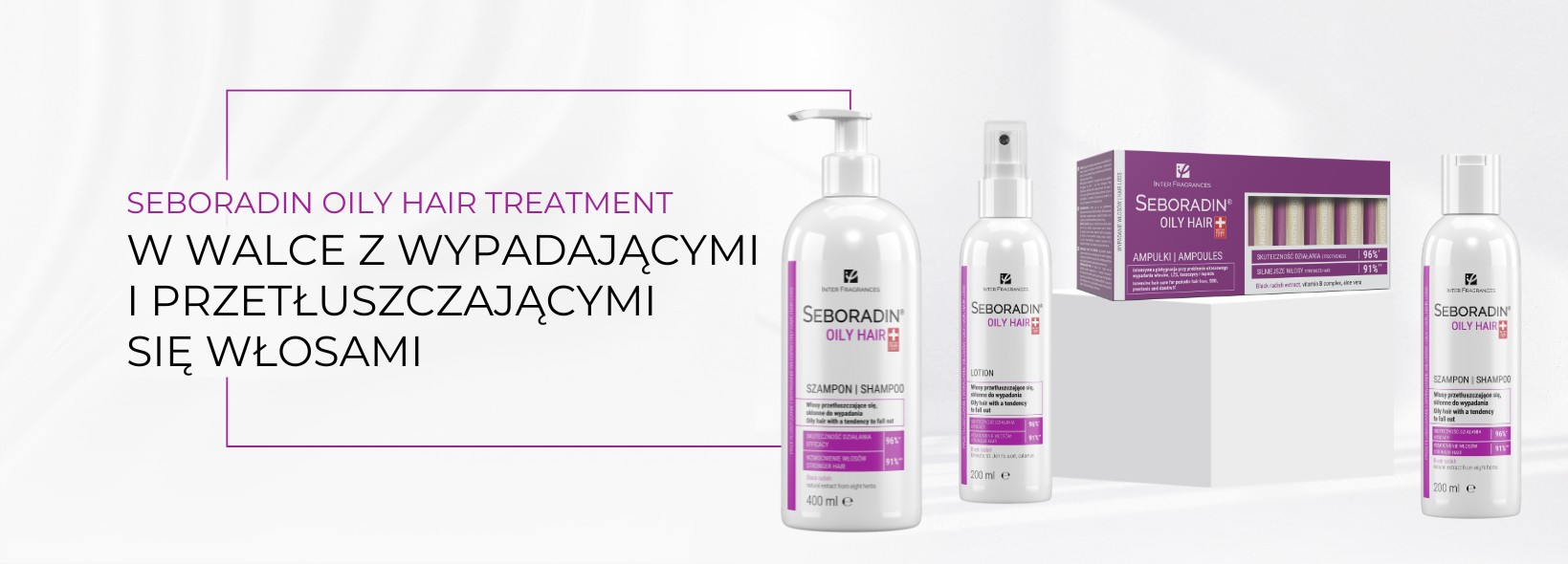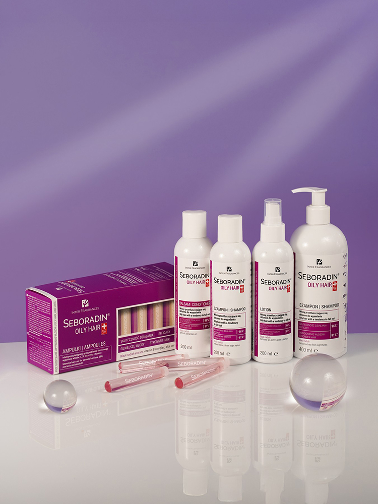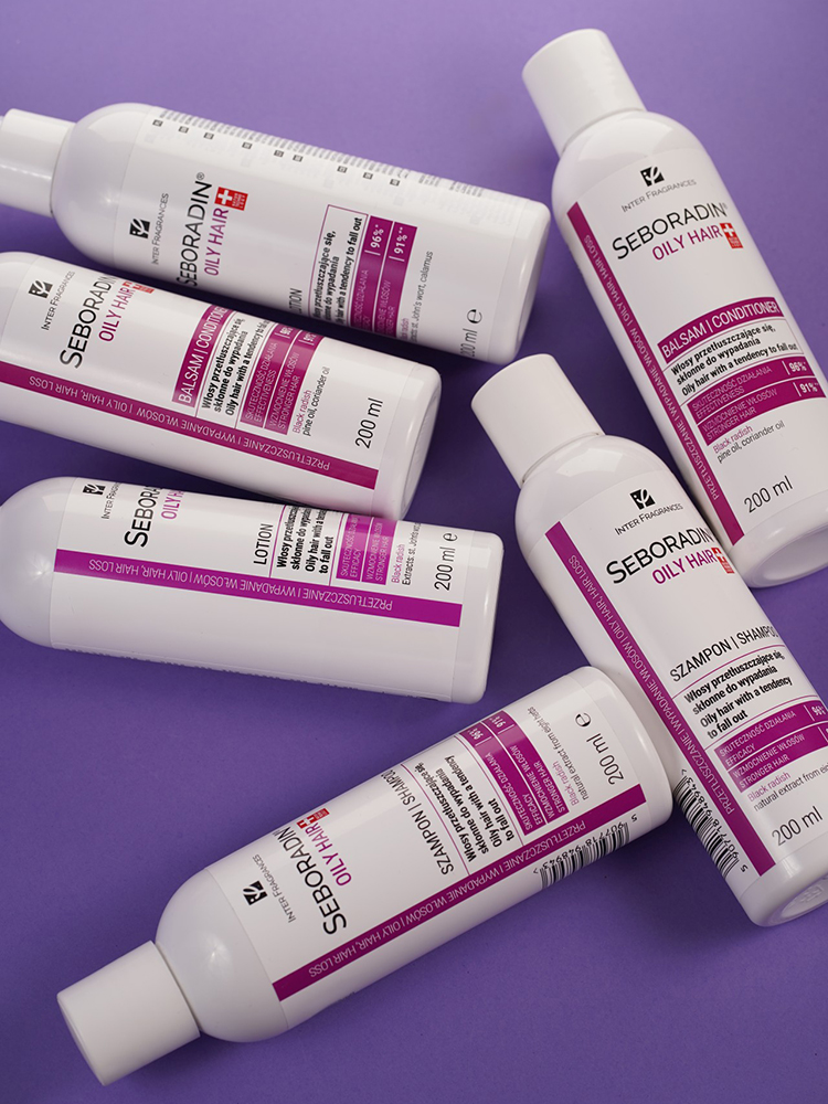 Szampon, balsam, lotion i ampułki z serii Seboradin OILY HAIR to preparaty stworzone specjalnie z myślą o osobach, które zmagają się z tendencją do nadmiernego przetłuszczania się skóry głowy i włosów, ale również dla osób: