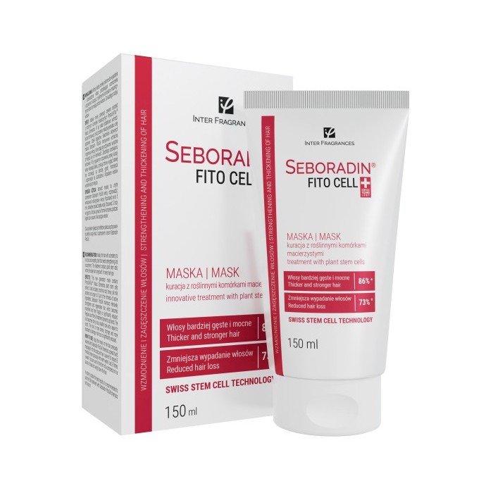 Maska nowej generacji zawiera ekstrakt z roślinnych komórek macierzystych PhytoCellTec™ Malus Domestica. W jej skład dodatkowo wchodzi: korzeń chinowca, miód, proteiny mleczka jedwabiu i olej arganowy. Dzięki bogactwu składników aktywnych maska Seboradin FITO CELL intensywnie wzmacnia i regeneruje włosy, które stają się odżywione i wyraźnie zmniejsza się ich łamliwość. Zapobiega rozdwajaniu końcówek. Regularne stosowanie pełnej kuracji poprawia kondycję i ogólny wygląd włosów, ich nawilżenie, blask, podatność na układanie i rozczesywanie. Włosy stają są bardziej gęste, mocniejsze. Wypadanie włosów wyraźnie się zmniejsza.*